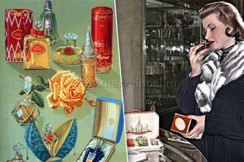 Центральный экспонат — культовый парфюм — запомнился не только запахом гвоздики и цитрусов, но и визуальным образом. Строгий геометрический флакон и лаконичная графика формировали образ нового времени, а насыщенная красная этикетка ассоциировалась с торжественностью и советской идеологией.